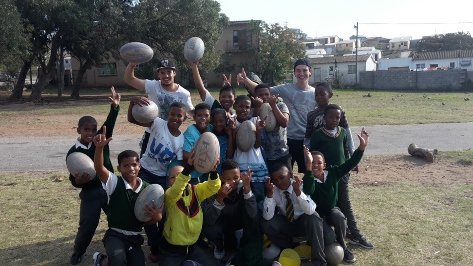 Dan zijn er naast het ‘office’ werk natuurlijk ook nog de coaching sessies. De dagen waarop je op het kantoor zit en wanneer je coacht, kan je afstemmen met de coördinatoren van UTS. Op een normale coaching dag bezoek je drie scholen in Port Elizabeth, die allemaal gelegen zijn in de townships, of zoals UTS ze noemt: ‘disadvantaged areas’. Op deze scholen houd je een sessie van anderhalf uur in je sport naar keuze. Ik heb zelf hockey en rugby gecoacht, ook al had ik nog nooit van mijn leven gerugbyd. Het was erg eenvoudig om zelf de beginselen van rugby te leren en ook makkelijk om deze over te brengen aan de kids. Een fantastische ervaring, omdat rugby een grote sport is in Zuid-Afrika en de kinderen zijn hierover altijd razend enthousiast!